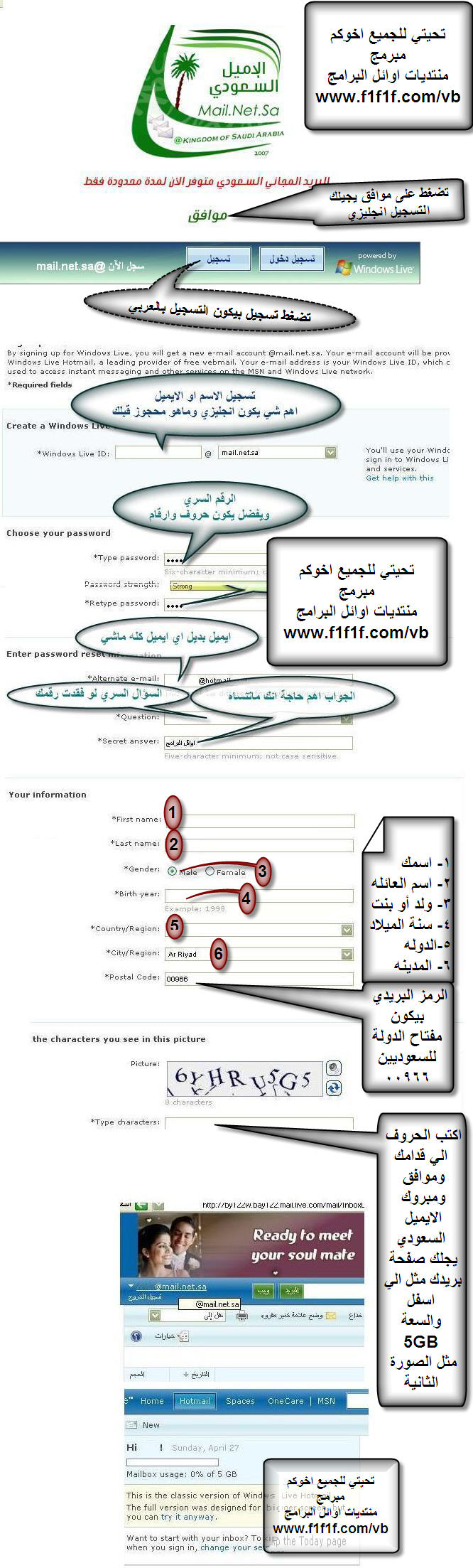 السلام عليكم ورحمة الله وبركاته البريد السعودي الرسمي معتمد من ويندوز لايف هوتميل وباللغة العربية ومميزات كثيرة رائعة mail.net.sa@اسمك او تعريفك حبيت اوضح لمن يصعب عليه التسجيل وهي نفس طريقة التسجيل بهوتميل وقد لاحظت من بعض الاخوة والاخوات لايعرف التسجيل في هوتميل فاغتنمتها فرصه لموضوعين ![]() رابط صفحة التسجيل ارجو التوفيق للجميع اخوكم مبرمج