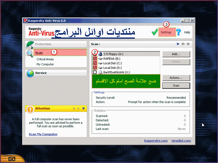 طريقة عمل اسطوانة طوارئ للكاسبرسكي أنتي فيروس وفحص الجهاز بها