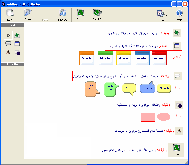 السلام عليكم ورحمة الله وبركاته البرنامج الأول اسم البرنامج / SPX Instant Screen Capture 4.4 الحجم / 1.85 م ب عمله / عبارة عن لاقط للصور بالمقاس والشكل المطلوب الموقع الرسمي للبرنامج http://www.moodysoft.com/spx لتحميل البرنامج http://www.moodysoft.com/spx/scsetup.exe السريال/ sema 34gwsRSmWwM= طريقة استخدام البرنامج : افتح البرنامج وذلك بالضغط على هذه الايقونة حتى تصبح موجودة على شريط المهام بجوار الساعة بعد ذلك افتح البرنامج او اي شي ترغب التقاط صورة منه.......... فقط اضغط بالماوس اليمين ضغطه طويلة او من لوحة المفاتيح على : Ctrl + Shift +F2 حتى يغير شكل المؤشر وبسحب المؤشر بالماوس الايسر حدد على المكان وبعد التحديد اترك الماوس تجد امامك رسالة حفظ الصورة اختصارات البرنامج : Ctrl + Shift +F1 للتحديد بشكل دائري Ctrl + Shift +F2 للتحديد بشكل مستقيم Ctrl + Shift +F3 لتصوير الكامل للشاشة ""فول اسكرين"" او اضغط من لوحة المفاتيح على Prt "" برنت اسكرين "" ![]() ![]() ******** البرنامج الثاني اسم البرنامج / SPX Studio 2.1 عمله / للكتابة والشرح على الصور الحجم / 1.80م ب هنا الموقع الرسمي له http://www.moodysoft.com/studio لتحميله http://www.moodysoft.com/studio/sdsetup.exe السريال / sema ZqqO4tkx79Q= للكتابة والشرح على الصور برنامج اكثر من رائع فقط افتح البرنامج واسحب اي صورة لديك وتفنن بالشرح مستخدما ادوات البرنامج الجميلة ![]() :..إضافات رائعه للبرنامج الثاني ..: (شرح مفصل للبرنامج) ما يهمنا في البرنامج هذه الإيقونات: لفتح الصورة للشرح عليها بعد انتهاء العمل على الصورة والشرح عليها نقوم بحفظ الصورة من هنا. وهنا بيان توضيحي مصور لعمل الإيقونات مع أمثلة لها .. راجياً من الله أن تكون واضحة لكم ![]() منقوول