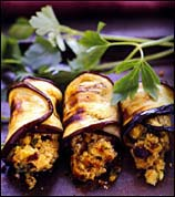 - توضع كمية من الحشوة في الباذنجان وتلف مثل ورق العنب .