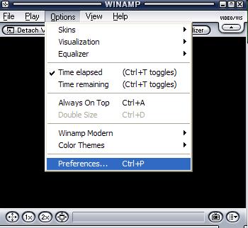 افتح برنامج Winamp و من قايمة Options اختار Preferences ---- ممكن تضغط كنترول+P للاختصار