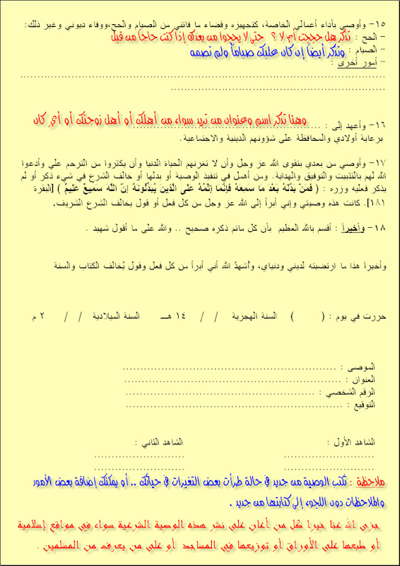 الوصية الشرعية : أحكامها – أركانها - شروطها